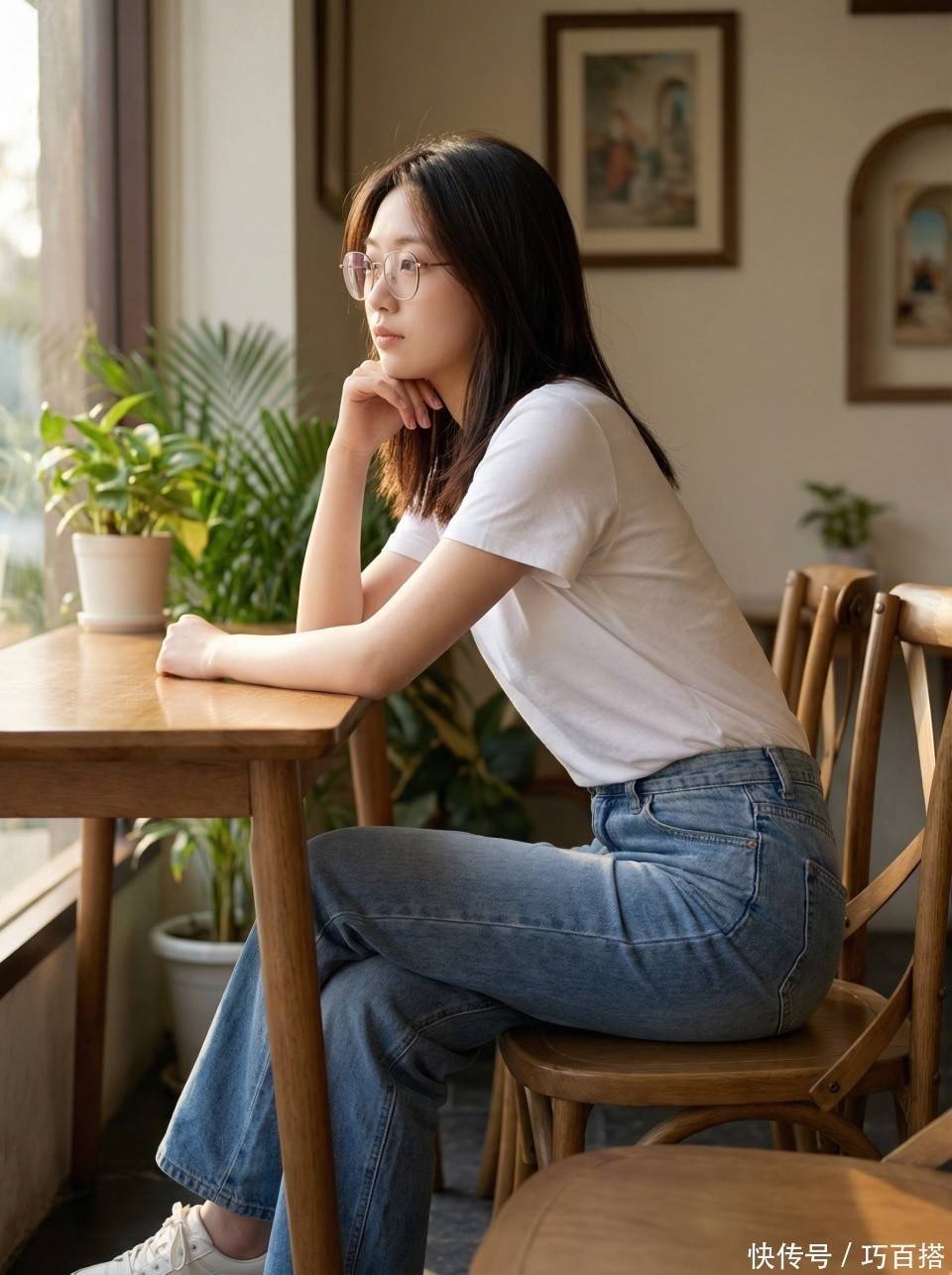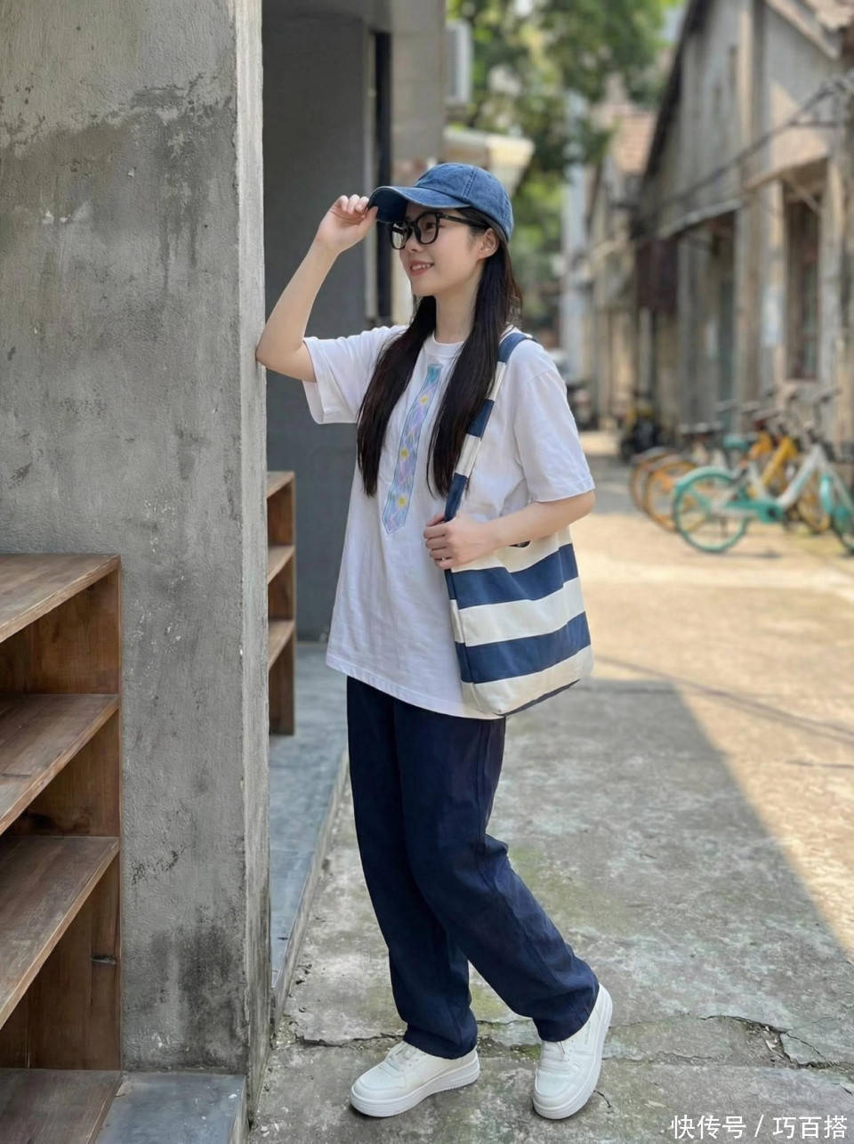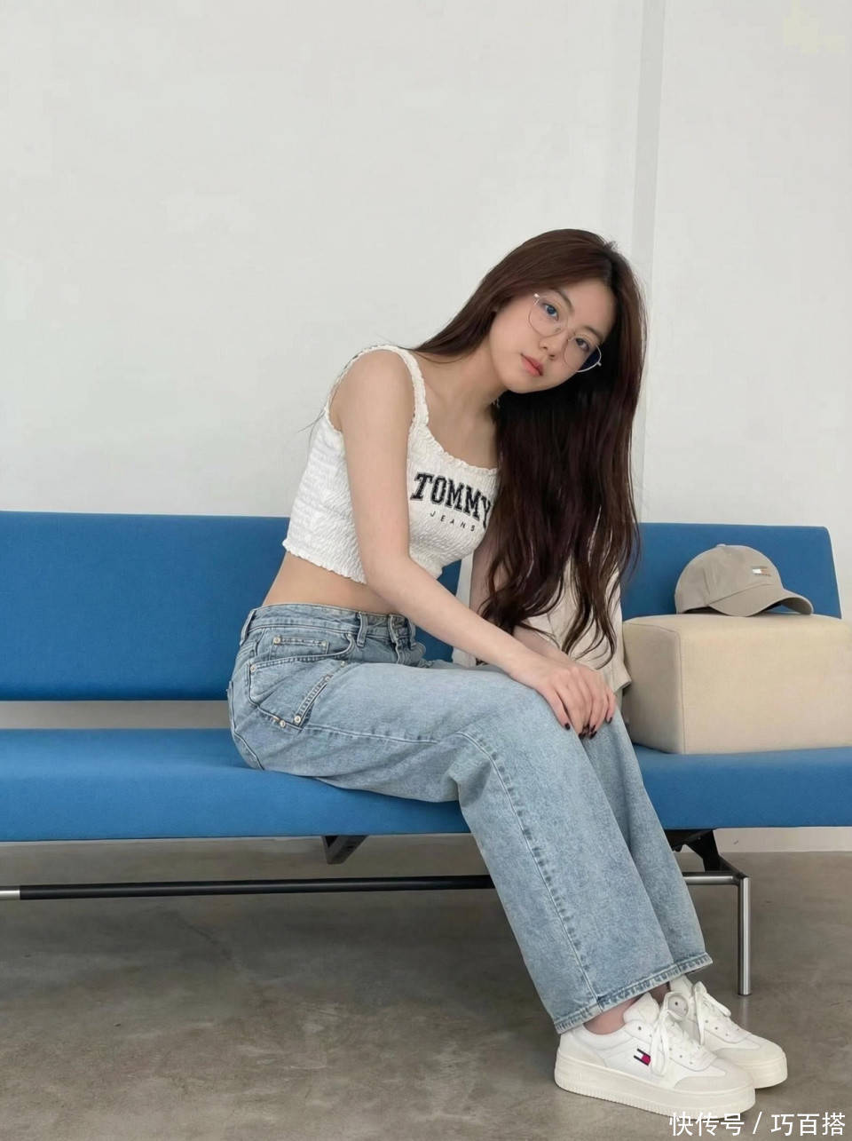 喜欢青春女大穿衣风格的姐妹,也一定要懂得做减法,像博主一样直接选择纯白色正肩白T恤与之搭配就很青春明媚,一条窄版直筒牛仔裤瞬间把人带到大学时代,减龄但不装嫩,30+、40+女性都可以尝试。